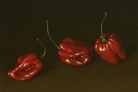 モチーフは、卓上静物やアトリエ・階段等の屋内風景。牛田あつみの作品は、愛知県名都美術館に所蔵されている。