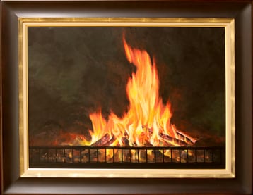 背景の黒が、ディープなダークグリーンとダークレッドが混ざり合い、より黒くなって炎を際立たせています。