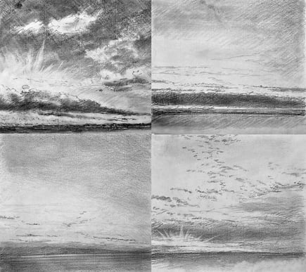 「際立った形のない、ただの曇り空を描くのが面白かった。ただの曇り空は、何もないけど、毎日表情が違う。」